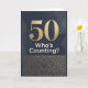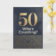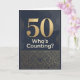 En 50-års födelsedagskort i mörka nyanser av svart och guld. En stor överdimensionerad 50 med orden "vem håller reda på det"? Det interna meddelandet innehåller ett sött meddelande. Inget behov av att räkna. Anpassa meddelandet för din älskade som fyller 50.