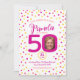 50-årsdag anpassningsbar rosa gult confietti inbjudningar