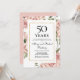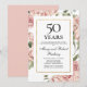 Elegant 50-årsdag för bröllop inbjudan mall har en modern blomster ram av dammig rosa rosor och mjuk grön lövverk. All text är redigerbar.