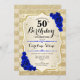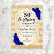50-årsdag - Guld Ränder Royal Blå Rosor Inbjudningar