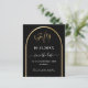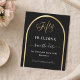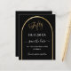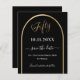 A Spara datumkortet för en 50:e födelsedagsfest. En svart bakgrund, dekorerad med en faux guld-båge. Anpassa och lägg till ett datum och ditt namn. Texten: Femtio och Spara datumet skrivs med ett stort trendig-handskript med stil. 1 lakan = 1 spara datumet som skrivs ut kant till kant.