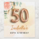 För en elegant och feminin 50-årsdag födelsedagsfest. En guldfärgad bakgrund. Dekorerad med en ro guld och en rosa vattenfärgad blomma, blommigt, grönt eucalyptus löv, spriter, grönsaks- och faux ro sprigs. Personalisera och namn. Svarta och gyllene brev. Namn är skrivet med ett modernt handskript i stil. Nummer 50 är skrivet med ett gyllene stil-typsnitt.