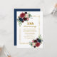 50-årsdagen för marinblå burgundi blommigt ram inbjudningar
