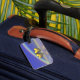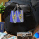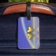 Bagagetagg med min söt bild av gyllene hjärtan flytande på vatten under regnbåge. Anpassadet säger "50 år".