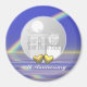 En fotomagnet med två små guldhjärtan flytande på vatten. Anpassadet säger "50-årsdagen".