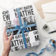 Enkelt svart och vitt 50-årsdagen raderade upprepad mönstrad förpackning. Fet grafisk födelsedagskalennfärgning papprare med platshållare för foton som anpassats med egna namn. Andra matchande 50:e objekt är tillgängliga. Unik design av www.mylittleeden.com