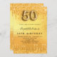 En modern, stilren och glamourös inbjudan till en 50-årsfest. En falsk guldliknande bakgrund med falska glitterdroppar, målarfärg som droppar. Namnet är skrivet med en modern handskriven stilsnurr. Anpassa och lägg till din festinformation. Nummer 50 är skrivet med en ballongstil-font, script.