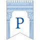 Denna eleganta lyckliga födelsedagsgirlangflagga är perfekt för en grekisk eller romersk temafest. Du kan ändra de grekiska blåtonerna i denna mall. Den rena designen har en tempel med pelare och andra dekorativa element. Perfekt för bröllop, förlovningar, examensfester, årsdagar, save the dates, möhippor och födelsedagsfester.