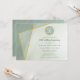 Denna enkelt utformade, moderna, geometriska 50-årsjubileumsinbjudan till bröllopsfirande har ett gråaktigt jadetema med kalligrafiska element, asymmetriska guldramaccent och marmorerad textur - anpassa textelementen för alla jubileer eller födelsedagsfiranden - av katz_d_zynes