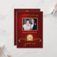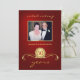 Personligens 50-årsjubileumsbjudanden - Elegant vintage guld accents on fet Royal Ruby Red background with foto ram and klassisk antique monogram. Lägg till ett eget foto och anpassa namn, datum och information för tillfället lycklig. Perfekt för både contemporary- och vintage-foton. Ändra enkelt texten och siffrorna för andra firanden i milstolpen, 40:e, 45:e, 60:e, 65e osv. Matchande kuvert, porto och tack för att du har tillgång till kort. **OBS: Siffran är 5 x 7 inbjudningskort. Andra storlekar och stilar finns i galleriet.