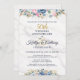 Elegant inbjudan till 50-årsjubileumsgallring i guld och marinblå med vattenfärg blommor i marinblå, guld, vit och rosa, kalligrafi typografi och vigselringar mot en matt marmorerad bakgrund. All text är redigerbar och kan användas för alla års jubileum. Kontakta designern via Zazzle Chat eller makeitaboutyoustore@gmail.com om du vill att denna design ändras, på en annan produkt eller vill ha kompletterande artiklar.