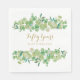 Med delikat akvarell eukalyptusgrönska kan dessa eleganta botaniska guldfärgade bröllopsjubileum servetter anpassas med era namn i elegant guldbokstav. Designad av Thisisnotme©