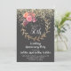 Elegant rosa och marsala blomsterkrans med guldglitter på svart bröllopsjubileumsfestinbjudan med en vit script-overläggning för att fira din stora dag. Anpassa för vilket jubileumsår som helst.