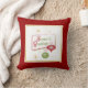 Julkudden har en stil-design för vintagen 1950 med röd och muterad grönt (oliv grönt) och texten: Säsongens hälsningar. Utformningen är accentuerad med två årgång julprydnadsföremål träd och 50 tittar guld-stjärnor.