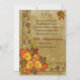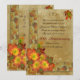 25-årsjubileums inbjudan Höst tema. Bild och illustration sammansättning av blad, band och gula och orangea krysantemum på en rustik pergamentliknande bakgrund. Detta är en tryckt bild utan separata dekorationer och kräver inte extra porto. Texten är anpassningsbar. Kan användas för alla speciella tillfällen, bara ändra texten för att passa dina behov.