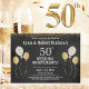 50-årsdagen av inbjudan till Golden Bröllopsfest. Designat för ett speciellt pars femtioårsjubileum, dekoreras detta kort med vita ballonger och guld och guld konetti mot svart bakgrund, med vit text. Om du vill anpassa dig ersätter du bara exempelinformationen för namn och händelseinformationen med hjälp av vår enkla mall för steg för steg. Se till att du ser den matchande 50-årsjubilen Golden Bröllopsfest Banner.