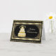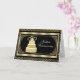 50-års bröllopsdag gratulationskort. Ett fantastiskt kort i svart och guld med guld tårta med hjärtan och utsökt ramverk.