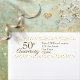 Guldbröllop 50-årsjubileum returadressetikett med dina detaljer i elegant vit text på en guldbakgrund med hjärtan. Designad av Thisisnotme©