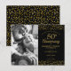 Med skira guldhjärtan konfetti på svart bakgrund. Du kan anpassa med ditt speciella foto och femtio år gyllene bröllopsdag firande spara datum detaljer i elegant modern typografi. Designad av Thisisnotme©
