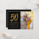 Fira 50 år med denna svarta och falska guldglittrande inbjudan med en stor stiliserad 50 tillsammans med ett foto av hedersgästerna. Detta fungerar bra för en gyllene 50-årsdag eller en 50-årsjubileumsfest. Kan också vara ett tillbakablickande bröllopsfoto istället för ett aktuellt!
