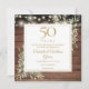 Med delikat akvarell landskapsgrönska och vackra strängljus på en träpanelbakgrund kan denna trendiga rustika jubileumsspåminnelse anpassas med era speciella 50-årsfirande detaljer. Designad av Thisisnotme©