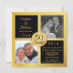 Skapa dina egna roliga och fantastiska anpassade 50-års bröllopsjubileum-inbjudningar -- två (2) "då och nu" inramade fotomallar -- med vacker glänsande emblem i guldtonad metallisk look. Anpassa namn, datum och detaljer för din speciella Golden Wedding Anniversary-firande. **OBS: Storlek för Fyrkantiga inbjudningskort. Andra storlekar och stilar finns tillgängliga för 50-årsjubileum, födelsedag och andra glada milstolpar.**