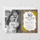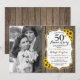 50-års bröllopsdag inbjudan med foto. Rustik design i vitt med falskt glitterguld. Innehåller solrosor, trämönster, script font och konfetti. Kan anpassas till vilket år som helst! Skicka ett meddelande om du behöver ytterligare anpassning.