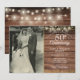 Med strängar av lampor och delikat gyllene kärlekshjärtan konfetti på en rustik träd bakgrund. Anpassa med ditt favoritbröllopsfoto och din speciella 50-års guldbröllopsfirande detaljer i chic typografi. Designad av Thisisnotme©