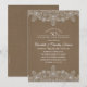 50-årsjubileum Rustik Mörk Jute Landsbygd Spets och Pärlor Inbjudningar. Anpassade till din fest. Med vacker spets, pärlor och typografi på en rustik mörk jute bakgrund. Eleganta bröllopsjubileums inbjudningar för kreativa landsbygdsjubileer. Denna bröllopsjubileums inbjudan är designad av http://www.superdazzle.com