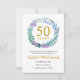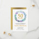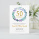 Denna Save the Date-kort för 50-års bröllopsjubileum har en delikat blomsterkrans gjord av blåklockor, växter och syrenblommor. Det kan enkelt anpassas med din speciella information om förnyelse av gyllene löften. Baksidan av inbjudan visar dina jubileumsdatum i elegant vit text på gyllene bakgrund.