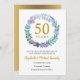 Denna Save the Date-kort för 50-års bröllopsdag har en delikat blomsterkrans gjord av blåklockor, växter och syrenblommor. Det kan enkelt anpassas med din speciella information om förnyelse av gyllene löften. Baksidan av inbjudan visar ditt jubileumsdatum i elegant vit text på gyllene bakgrund.