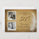 Inbjudningskort för 50-årsfirande med elegant och retro-typografi i boktryck, rustik pergamentbakgrund och accentuerad med en elegant vit fjäderplym (del av bilden - inte en riktig fjäder), med två fotofält för "förr och nu". Ladda upp dina två bilder och lägg till namn, datum och detaljer. Vänligen kontakta oss för att anpassa denna stil för andra stora firanden. Matchande porto och tackkort finns tillgängliga på begäran.