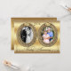 Denna eleganta inbjudan till 50-årsjubileum för ett bröllop har ett par utsirade bruna och gyllene ovala fotramar med pärlor och invecklade rullar och hjärtan på sig. Det finns falskt graverade guldpaletter som säger "Då" och "Nu" som kan tas bort. Det finns två matchande hörn med filigransliknande rullar på framsidan och fyra på baksidan, tillsammans med mallfält där du kan lägga till din egen text. All text är anpassningsbar, liksom pappersvalen. OBS, om du byter typsnitt eller teckenstorlek kan din text inte passa ordentligt längre. Zazzle kommer inte att redigera någonting för stavfel, justering eller någonting annat, och jag kommer inte att se din inbjudan. Allt kommer att skrivas ut som det visas på din skärm. Om du behöver hjälp med inbjudan, vänligen kontakta mig INNAN du beställer den. Denna inbjudan är utformad för att passa kort i storleken 5x7. Om du by
