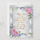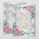 50-års bröllopsjubileum inbjudan för föräldrar med vackra rosa orkidéer, blå blommor, gyllene hjärtan, fjärilar och band. Anpassa insidan av denna inbjudan med din festinformation