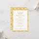 Denna inbjudan till 50-årsjubileum för bröllop har ett dekorativt element, en vit textyta och en damaskmönstrad bakgrund. Den är redo att anpassas och är idealisk som en 50-årsjubileumsinbjudan till bröllop för en semi-formell eller formell fest.