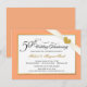 Skapa dina egna personliga 50-årsjubileumsinbjudningar -- Vacker korall-rosa kant med tryckt vit band och gyllene ädelstens-bling-hjärta. Klassisk graverad typsnitt med utsmyckad vintage-stil svulstig skrifttyp -- Elegant, prisvärd lyx och unik anpassning för dig! Lägg bara till namn, datum och detaljer för din speciella jubileumsfirande. **OBS: Alla delar av denna design är en del av den tryckta bilden -- bandet, juvelbesatta brochen och ramen är INTE upphöjda, präglade eller presenteras som riktiga dekorationer. Storlek anpassad för små inbjudningskort. Klicka på "Anpassa" för att ändra storlek, pappersalternativ eller teckensnittsval. Andra storlekar och st