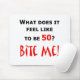 Vad gillar den känselförnimmelsen för att vara 50? Bita mig! Den humoristiska designen för de åriga 50na vem inte är lycklig om roterande 50 och en varning undertecknar för andra. Gör en underbar 50th födelsedaggåva.