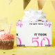 Söker du efter papper förpackning för 50-årsdagen? Den här roligten är papper med ord "Det tog 50 år att få den här presenten" i shock rosa och svart text på vit bakgrund. Det gör underbart pappert för en 50-årsgåva till henne. Copyright Kathy Henis
