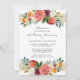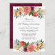 Elegant bröllop-jubileumsinbjudan innehåller snyggtens anpassningsbar som är utformad med en rustisk blommigt av blommor med fallfärg, inklusive ro, dahlias, blommor med peonblommor och grönska, i en fantastisk höstpalett med burgudtt, guldfärgad gult, persikofärgad orange, rosa och nyans av grönt. Den har stor neutralt beige rand.