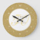 50:E BRÖLLOP-ÅRSAREN GULD DUST CONFETTI CLOCK. Personlig med namn i Faux guld över ett vackert manus "50" (eller ett inledande monogram) på en känslig guld-dammkonetti-bakgrund. Designad av Pure Piglet© på www.zazzle.com/purepiglet*.