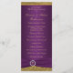 Elegantens lila och guld blommigt 50:e bröllop-årsdagen av förnyelseceremonin för programmallen eller servicekortsordningen är helt anpassade. Det har en tryckt text på lila band med en cirkel tryckt på kristaller med en ornat guld kor i mitten. Du kan också ändra texten till ett menykort eller ett mottagningsschema för händelsekort eller resväg.