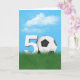 En svart och vit fotboll i grönt gräs, blå himmel och moln för 50 år sedan. Ålder kan ändras och texten i kan redigeras.