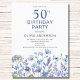 Hämta redo till party med det här 50:e födelsedagsblått vykortet för blommigt. Lätt att ändra texten. Söt vattenfärgsvildblomma botaniskt.