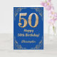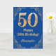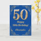 50:e födelsedag Blått och Guld Glitter Ram Kort