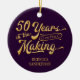 Minneshögtid till någons 50-årsdag med detta vackra prydnadsföremål som innehåller ett valfritt foto på baksidan för tvåsidig ornament design och 50-ÅRS I SKAPAR design på framsidan som är personlig med deras födelseår i designen och namn. Obs! Ett lila- och guld-tema visas, men lila bakgrund färg kan ändras till ett annat färg genom att klicka på fliken CUSTOMIZE. Om du vill lämna bakgrundsbilden tom tar du bara bort exempelfotot. Kontakta designern om du vill att designen ska ändras eller på en annan produkt.