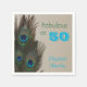 Dessa 50:e födelsedagsfest-cocktailservetter i roligt har påfågelfjädrar med ord "Fabulous at 50" till högerna på fjädrarna och namn på födelsedagspresenten nedan. Copyright henishouseofpaper