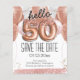 hej 50 födelsedagsfester sparar datumet för rosa glitter-ballonger. Spara datumet