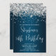 En söt inbjudan till hennes fantastiska 50:e födelsedagsfest firande. Faux mousserande silver glitter och mörk tealblått och havsblått gradient ombre. Den digitala konsbakgrunden skrivs ut som ett foto. inbjudningskort för födelsedagsfest av anpassade. Inbjudningar till Glam och chic.