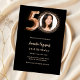 En modern fotoinbjudan till snyggten för 50:e födelsedagsfesten. En svart bakgrund, ro guld. Anpassa och lägg till information om party.