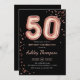50 födelsedagsfest inbjudan. Utformning av eleganten i faux glitter ro guld och svart. Inbjudan-kortet innehåller 50 ballonger och skriptteckensnitt för ro guld. Perfekt för en snyggt vid firande. Berätta om du behöver anpassningsbarnas ålder.